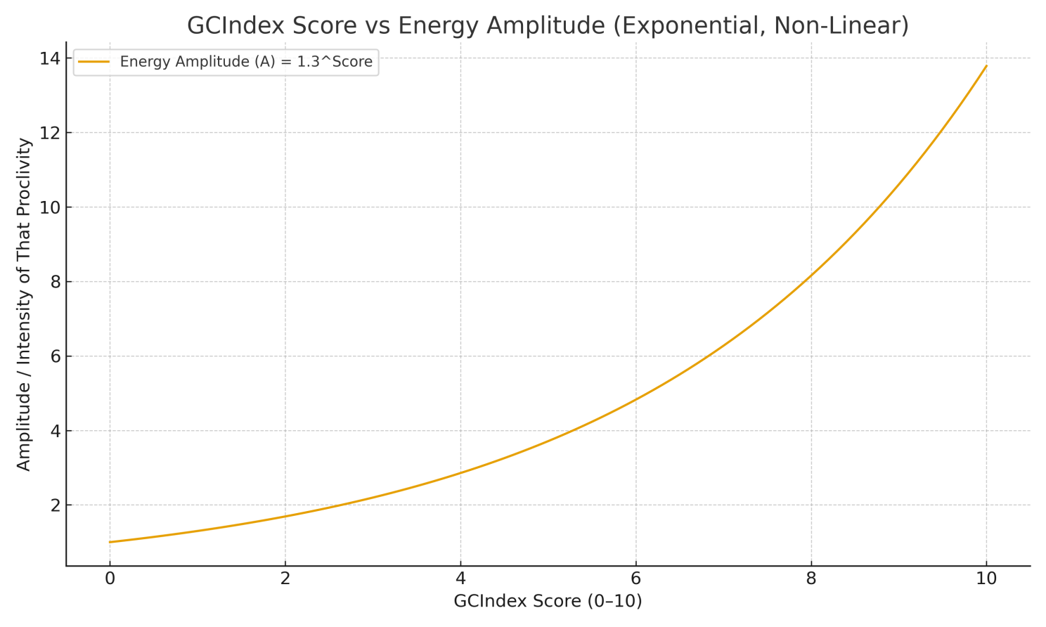 Energy for impact increases exponentially the greater The GC Index proclivity score