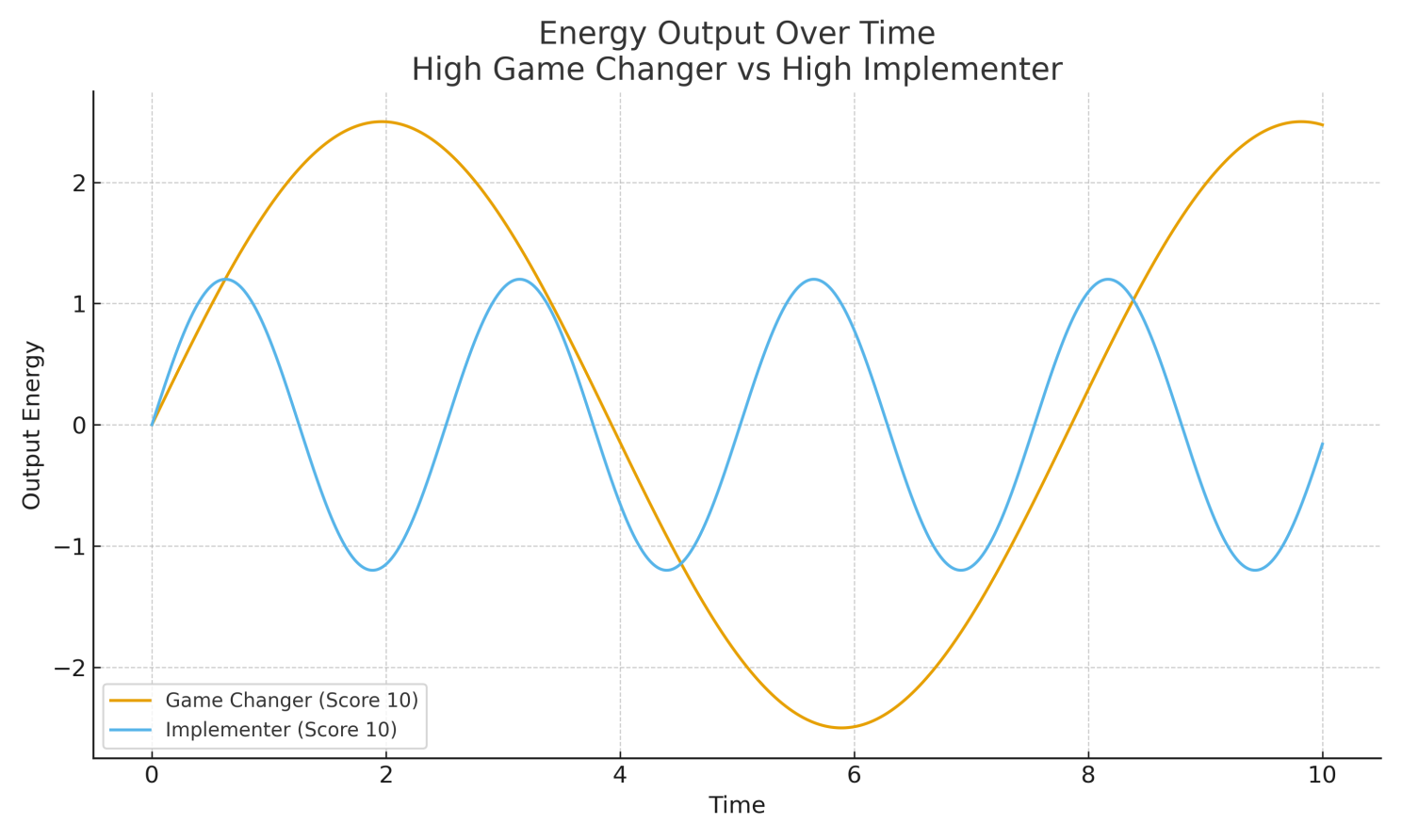 We assume for this exercise a 10 Game Changer and a 10 Implementer. How do they differ?