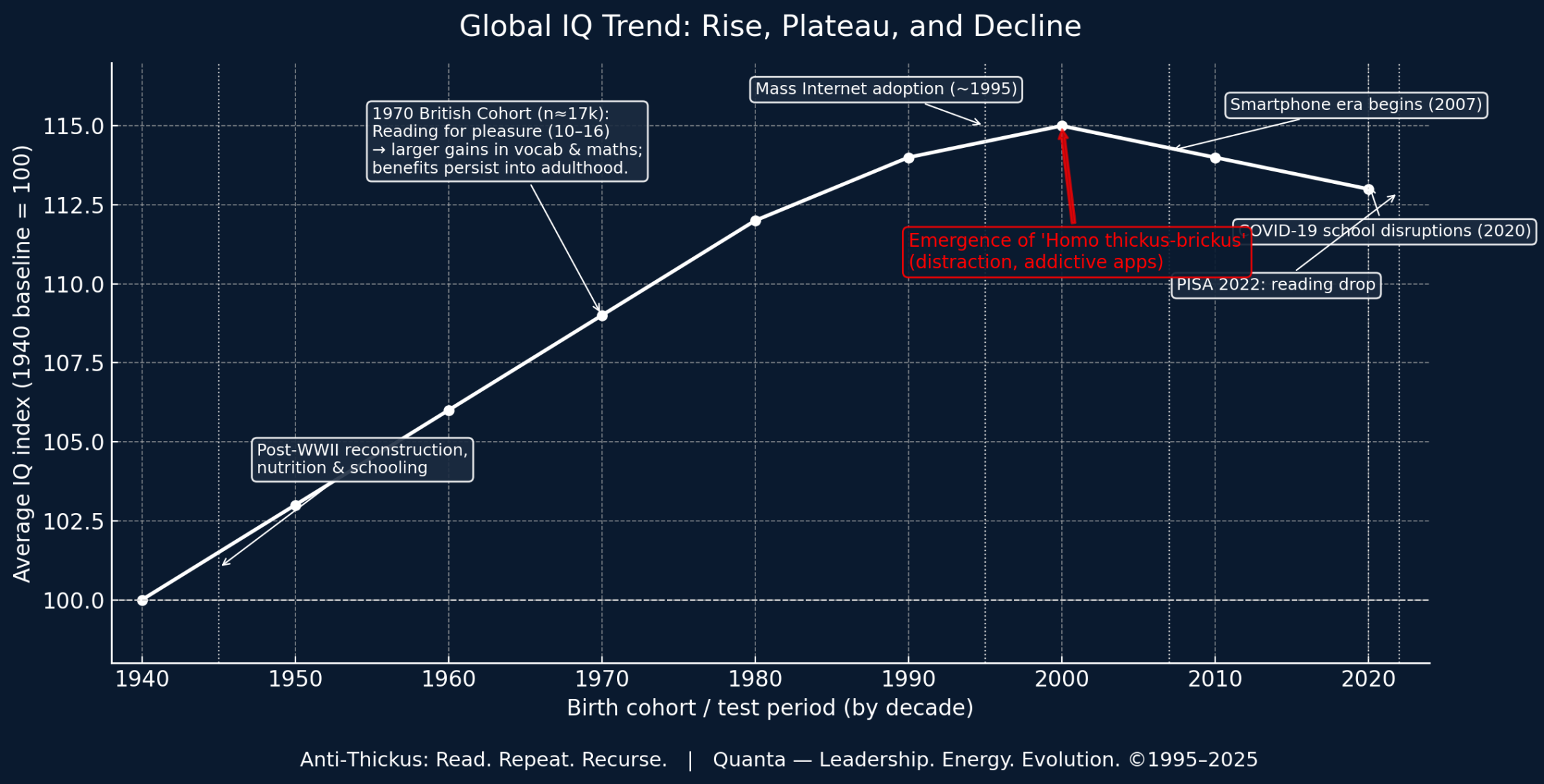 The 1970 British Cohort proves that a few hours of reading every week will compound into a lifetime of intelligence, health, and success—stronger than family background and all other factors. Reading is the viagra for the mind. For all leaders and their organisations.