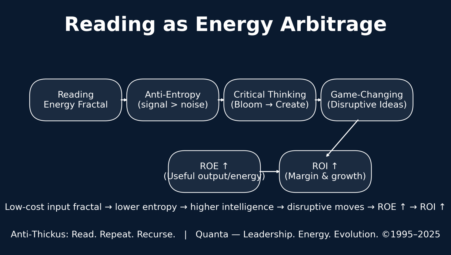 In organisational terms: reading = energy fractal. Install it early, repeat it often, and the returns persist for decades.
